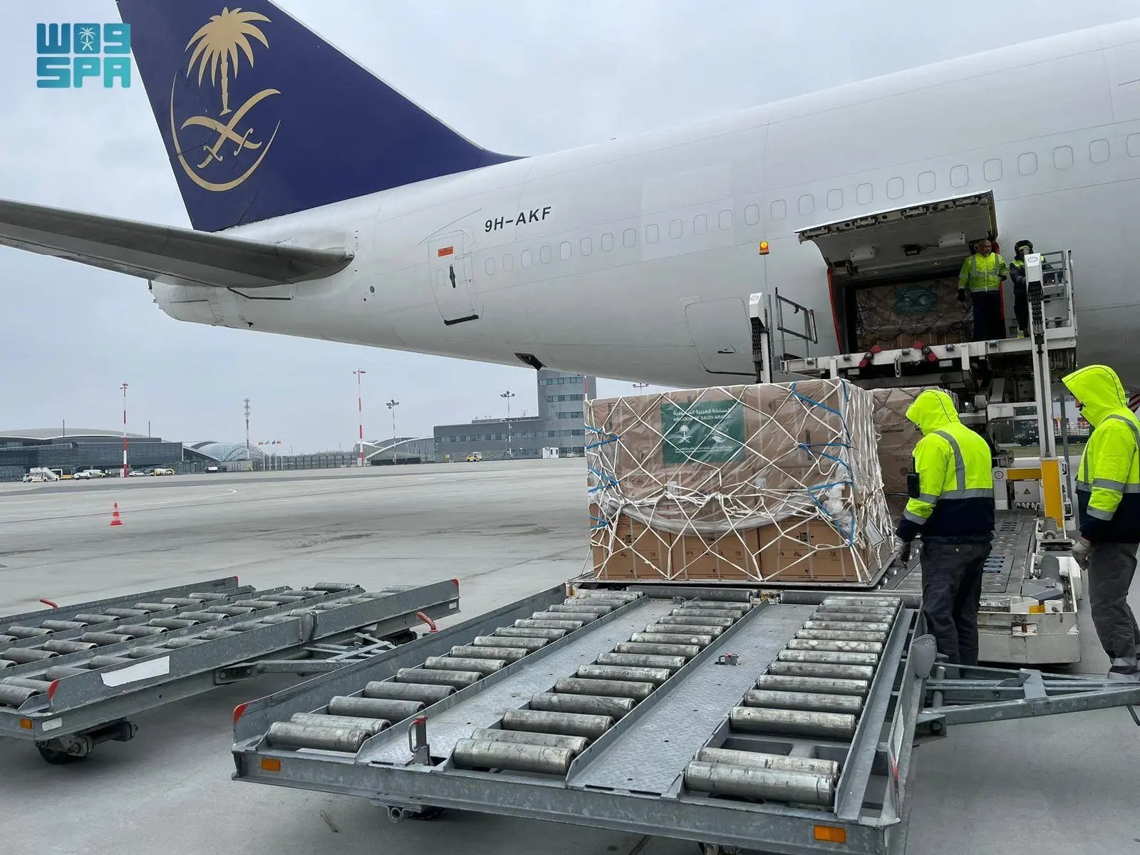 The 11th Saudi relief plane operated by King Salman Humanitarian Aid and Relief Center (KSrelief) has arrived at the Polish Rzeszow Airport, located near the Ukrainian border, carrying 80 tons of relief aid supplies, including electric generators and appliances. The Saudi Ambassador to the Republic of Poland, Saad bin Saleh Al-Saleh, and a logistic team affiliated with KSrelief were also on board the plane.